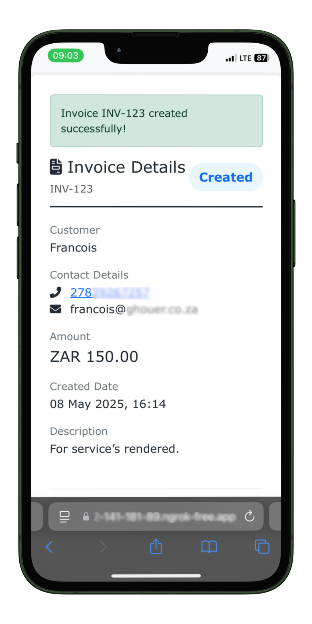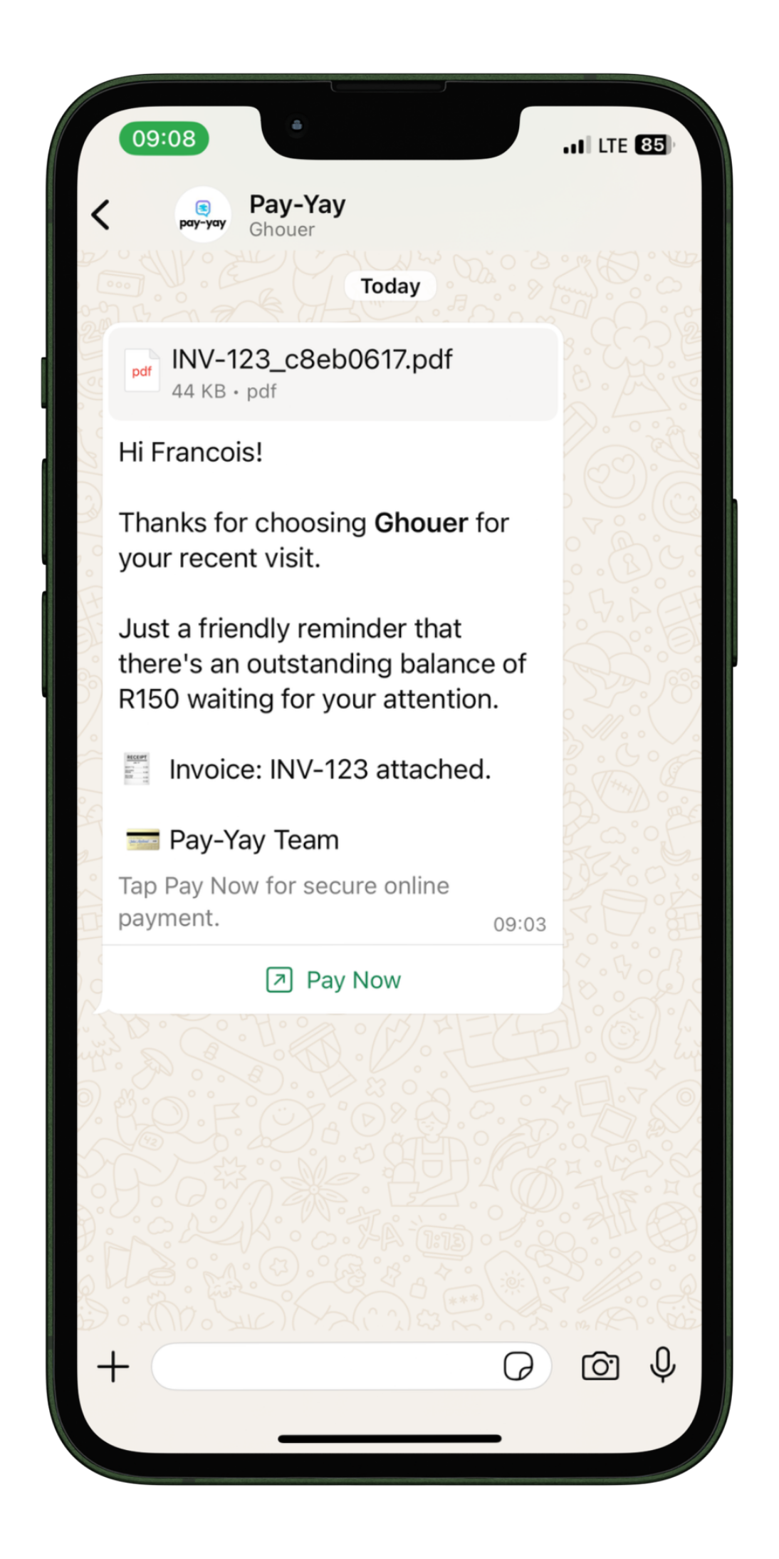 Create and send professional-looking invoices that can be viewed and paid directly from WhatsApp messages.
